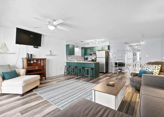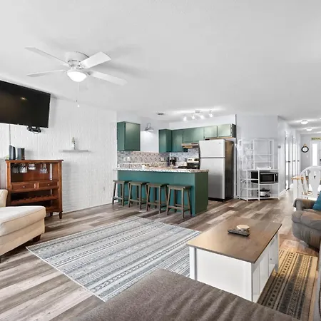 Featuring an outdoor swimming pool for guests' relaxation, the 2-bedroom Emerald Escape-Ground Floor In Golf Colony Myrtle Beach villa is located 3.8 km from Heron Point Golf Club.